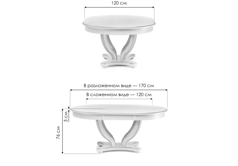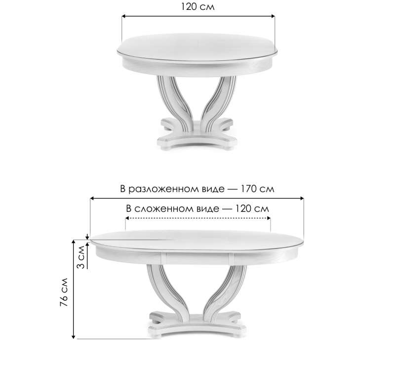 Длина стола в разложенном виде: 170 см.